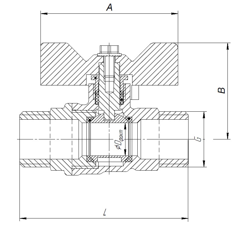| Артикул | DN | PN | L | A | B | D | G | Масса,г | Коробка/шт. | |