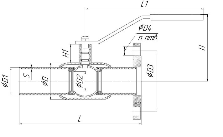 PRODUCT NUMBER | DN | PN | L | L1 | H | H1 | D | D1 | D2 | S | Вес | |